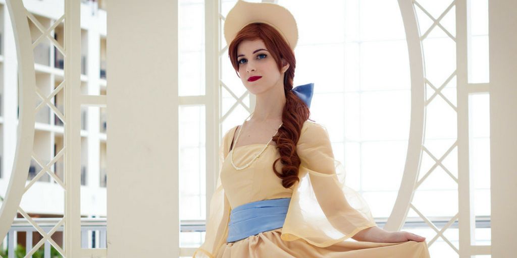 This cosplayer adopts the look of Anastasia in her ballroom attire, matching the animated version perfectly.