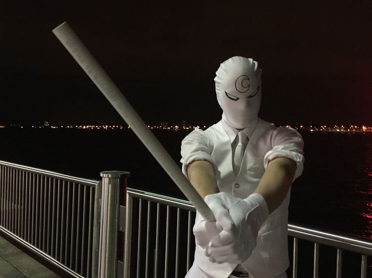 Initially seen as kind of a Batman knockoff, traipsing around town in a cape at night and beating up criminals, he is notably different by dressing all in white— which makes him an easy target.