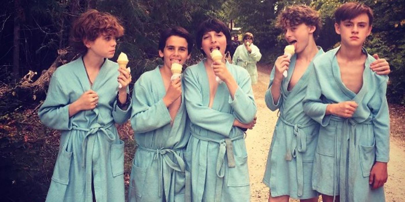 This behind-the-scenes photo takes place while the actors were filming at Derry's local swimming hole, a pivotal scene where the Losers all finally come together and bond over the horrors they had witnessed. While the cameras weren't rolling, the actors were all treated to a delicious ice cream cone while they hung around the set.