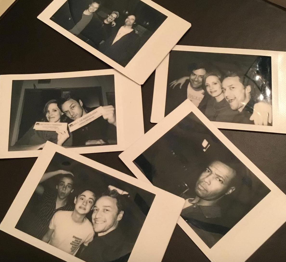 This picture is particularly interesting, as it unites the child Losers with their adult counterparts. The bottom left polaroid shows McAvoy with Jaeden Lieberher (aka his younger self). Other images portray McAvoy with costar Jessica Chastain and grown-up Mike actor Isaiah Mustafa.