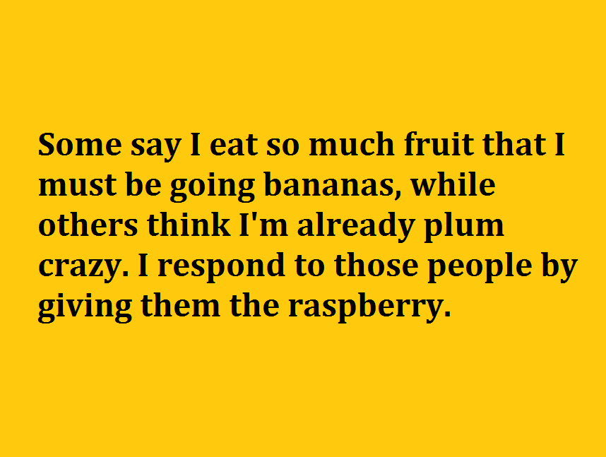 “Some say I eat so much fruit that I must be going bananas, while others think I'm already plum crazy. I respond to those people by giving them the raspberry.”